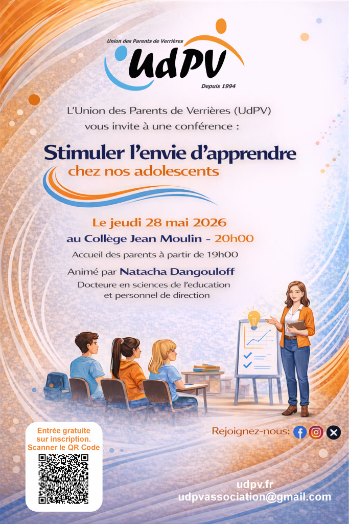 L’Union des Parents de Verrières (UdPV) vous invite à une conférence :